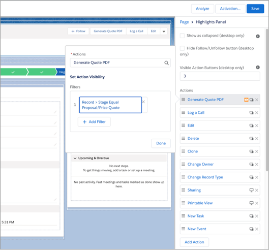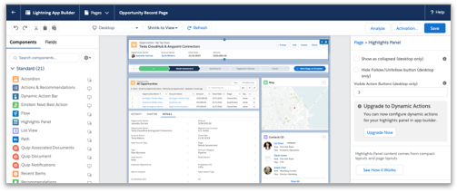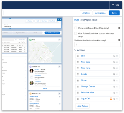●Directly configure the actions that show up on that Lightning page from within the highlights panel’s property panel.