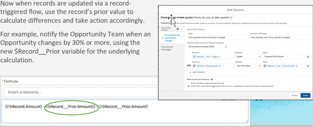 Now when records are updated via a record-triggered flow, use the record’s prior value to calculate differences and take action accordingly.