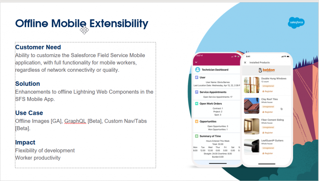 How would this be helpful for Manufacturing: If you are using field service lightning, this feature would help you to customize the offline capability with the ability to add offline images, and take pictures which would be critical for field service technicians.