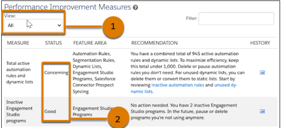 Get performance information, recommendations, and required steps on the Optimizer page when you need them. The Optimizer feature, now generally available, also includes some changes since the last release. Diagnose and treat setup problems that are blocking your access to features with the Configuration Issues table. The Performance Improvement Measures table now includes good measures so that you can see what’s working well in your business unit. Plus, the new Prospect Change Monitor helps you understand which features result in the most prospect changes for your business unit.