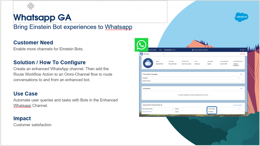 Bring Einstein Bot experiences to Whatsapp to handle international customers and partners.