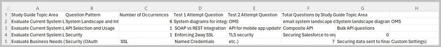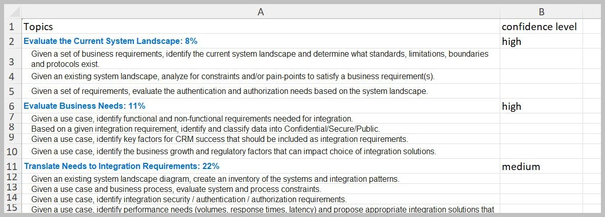 I had another spreadsheet where I downloaded the study guide and created an excel spreadsheet with topic and subtopic areas.